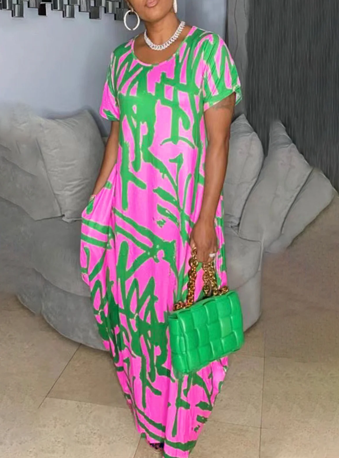 Nysra | Abstraktes Sommerkleid mit Rundhalsausschnitt